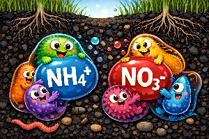 Caption to depict the role of Biochar, Humates and Microorganisms to reduce Nitrate leaching