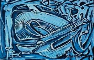 'Lightning Flashes Stab Across The Cosmic Void, Lighting The Dark Creating A Universal Spark', acrylics on board, by Leon Aarts