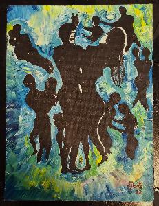 'A Future Walk Along The Foreshore', acrylics on board, by Leon Aarts, 2004