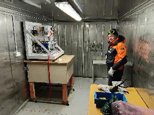 AntarcticaNZ science technician, Harry Offer, following the installation of the back-end of the AERI spectrometer.