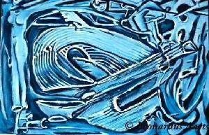 'Man playing mandolin' mixed media on board, by Leon Aarts(inspired by Picasso)