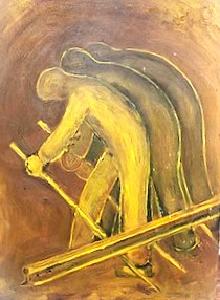 'Rail Sleggers' (tampers or Hammers) by Leonardus van de Ven, oils on board (enquirers welcome)