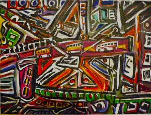 'Road Chaos, post 2011 ChCh Earthquake-alias 'Bus Lanes'', by Leon Aarts (sold)
