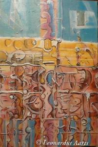 "Moonage Daydream" (named after a David Bowie song), acrylics and multi media on canvas board, by Leon Aarts (gifted)