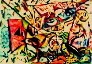'Jester' by Leon Aarts acrylics on paper, for sale.