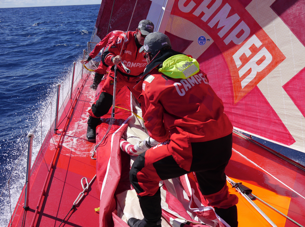 On day sixteen of leg one CAMPER with Emirates Team New Zealand has made further small gains and is preparing for the heavy weather associated with an imminent southerly front.