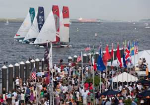 Competitors in the America' s Cup World Series Newport Regatta went practice racing today, revelling in the 12-18 knot breeze.